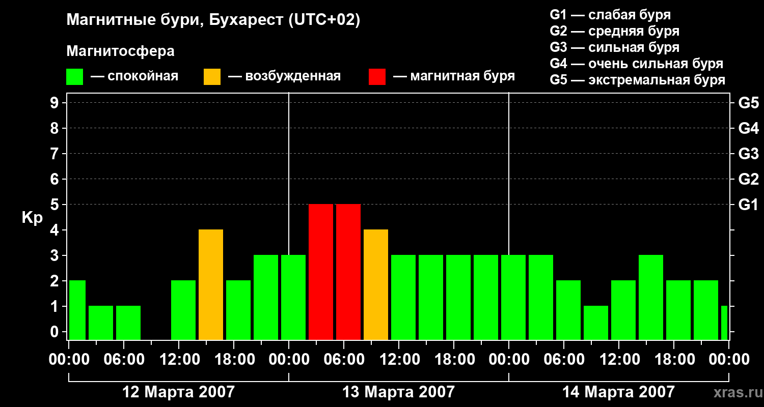 Магнитные бури в Бухаресте — 14 марта 2007 года
