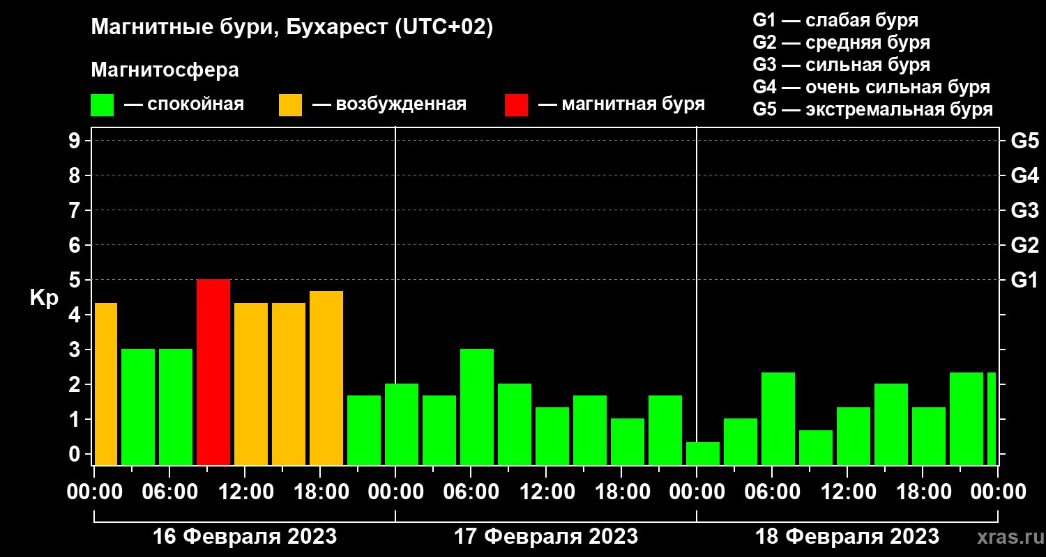 Магнитные бури в Бухаресте — 18 февраля 2023 года