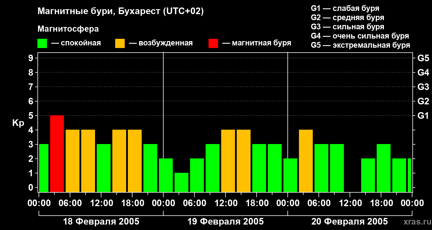 Магнитные бури в Бухаресте — 20 февраля 2005 года