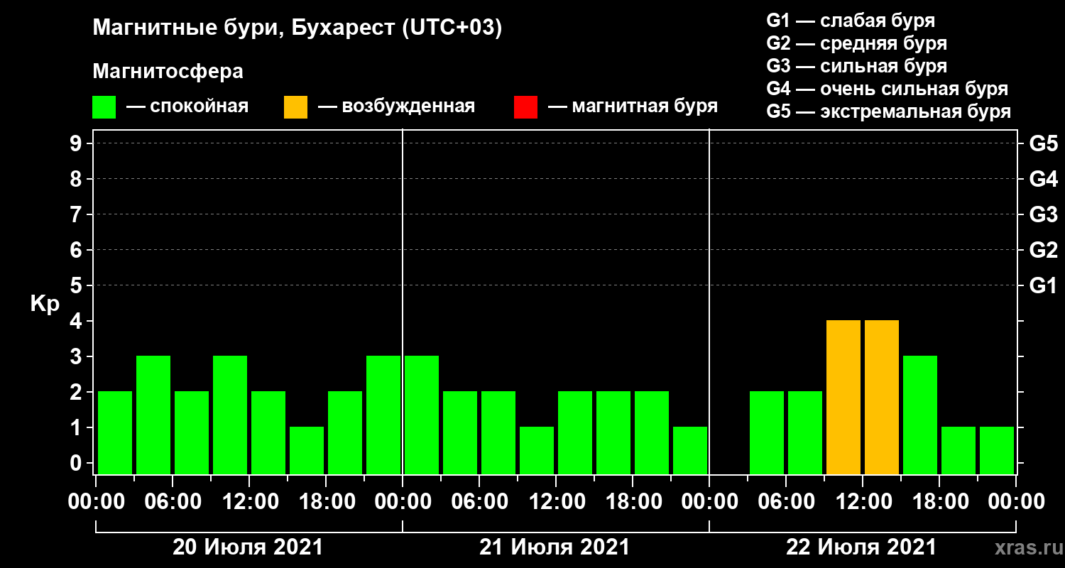 Магнитные бури в Бухаресте 22 июля 2021 года