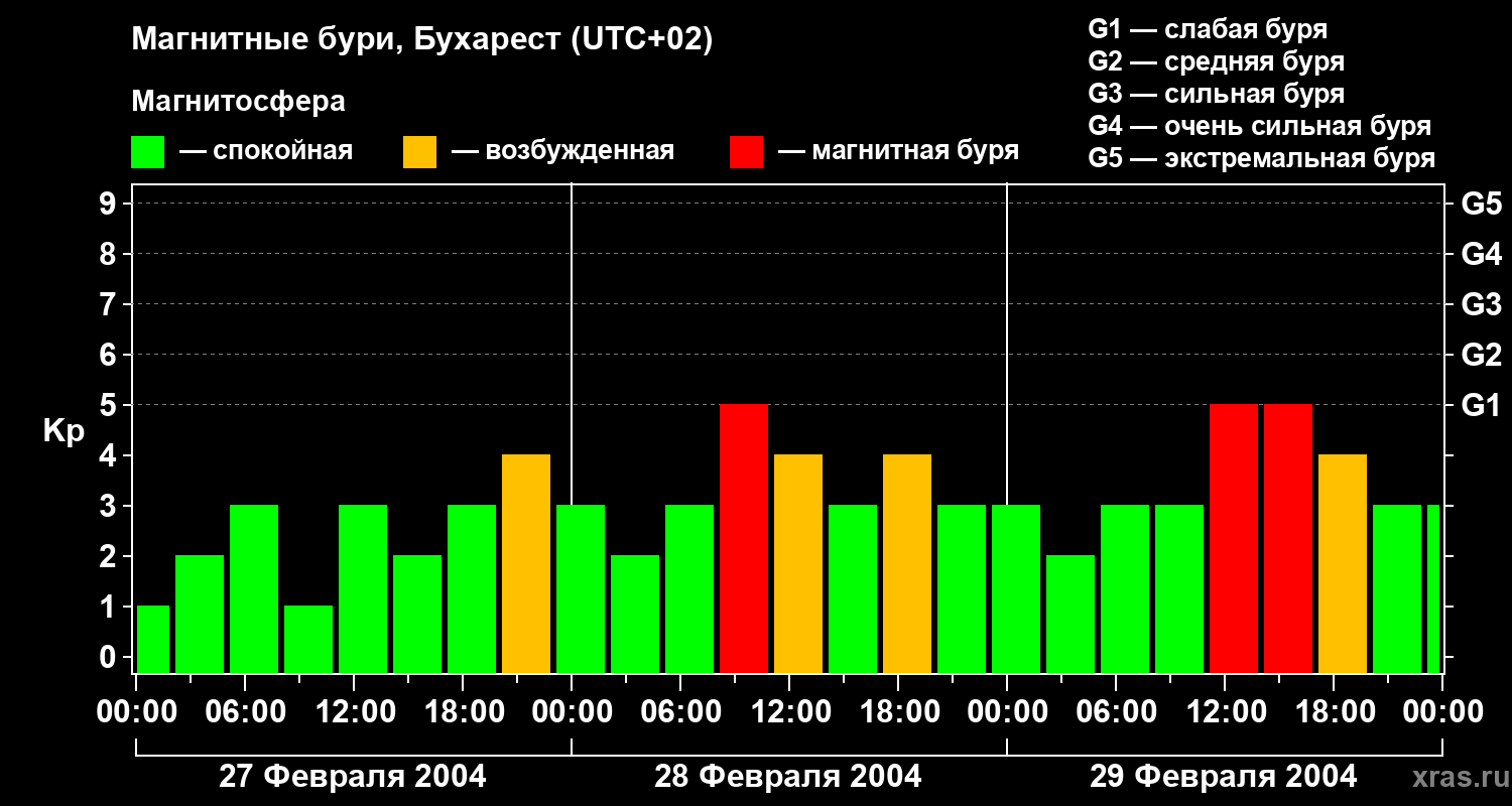 Магнитные бури в Бухаресте — 29 февраля 2004 года