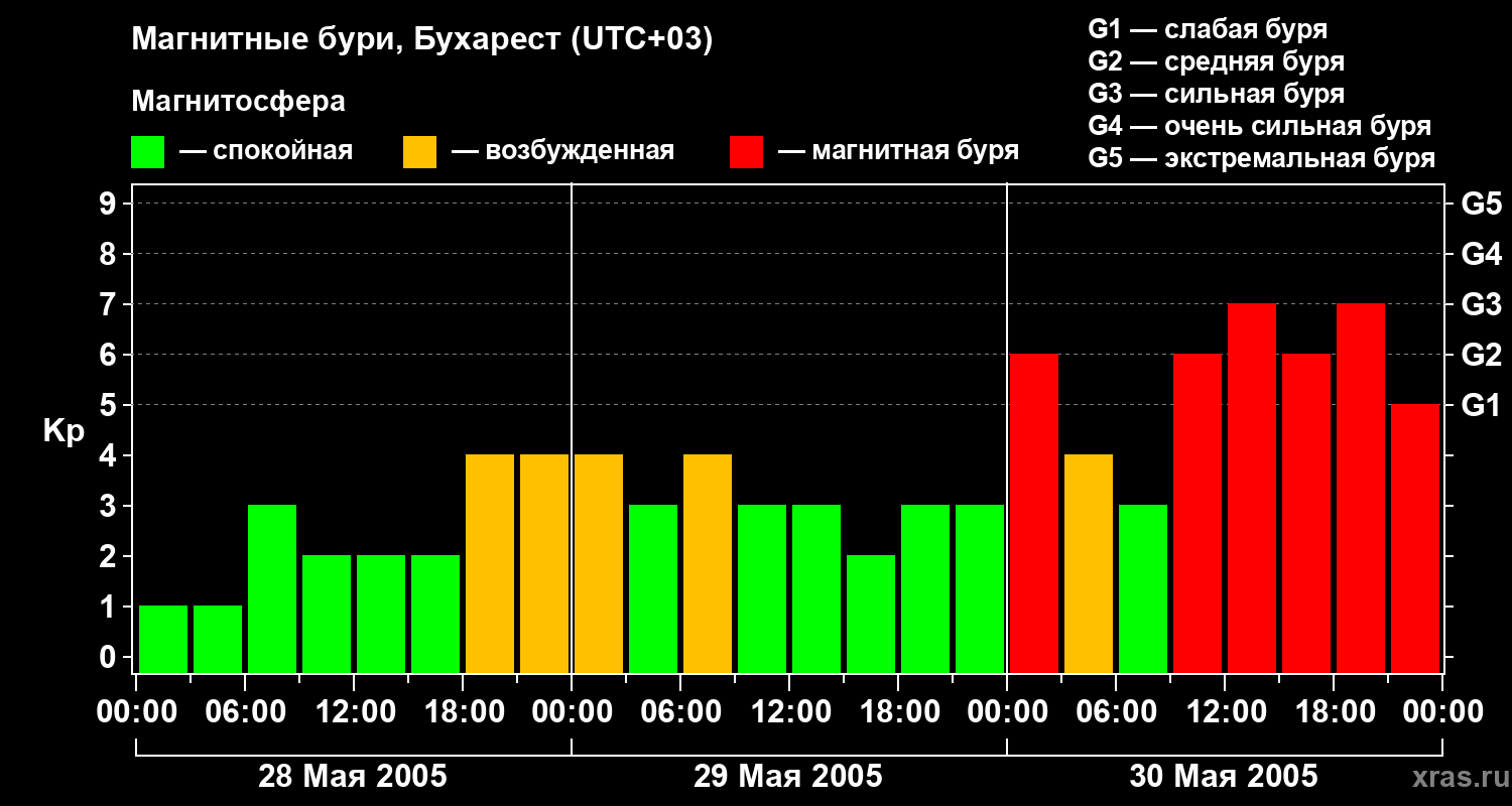 Магнитные бури в Бухаресте — 30 мая 2005 года