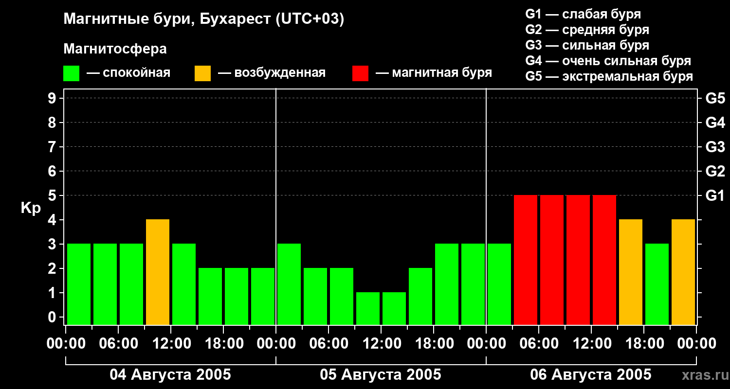 Магнитные бури в Бухаресте — 6 августа 2005 года