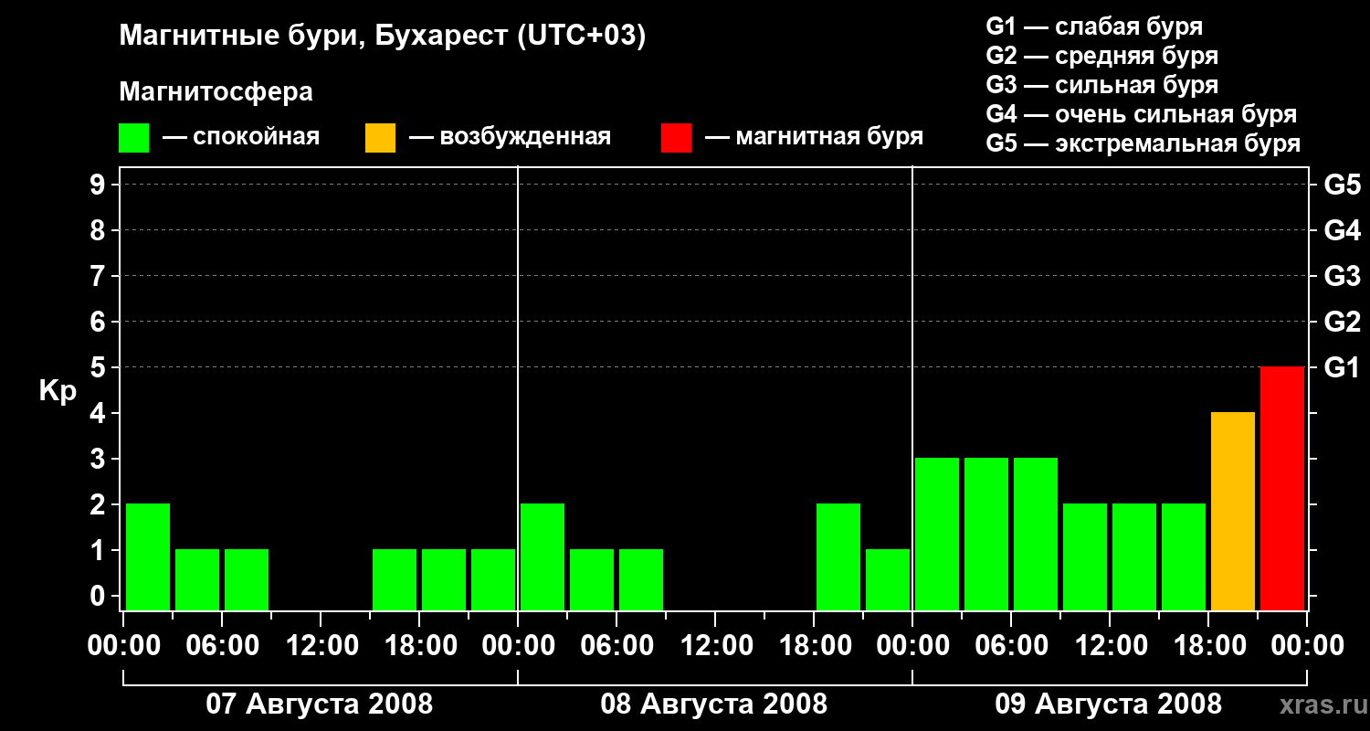 Магнитные бури в Бухаресте — 9 августа 2008 года