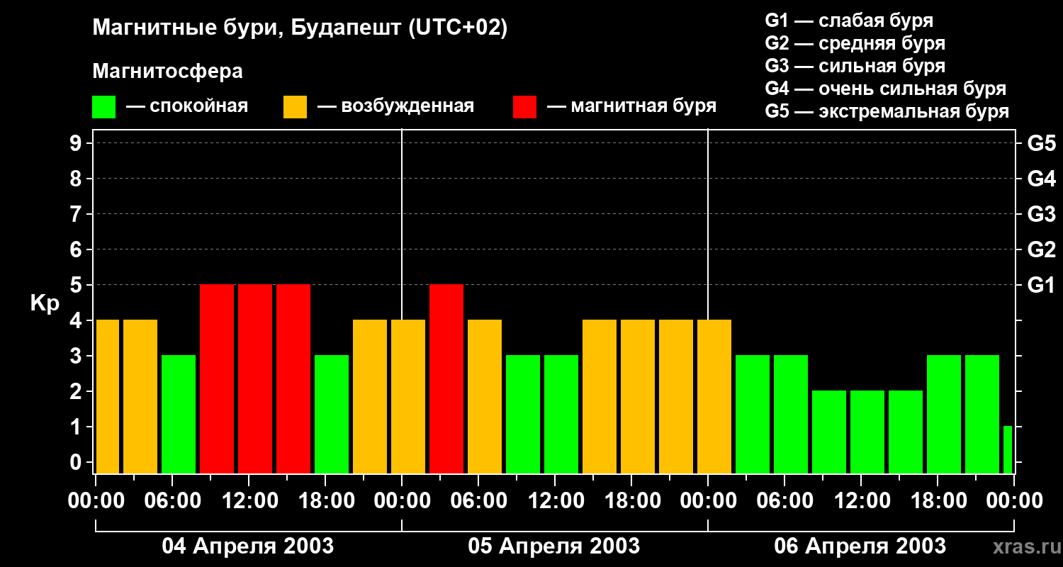 Магнитные бури в Будапеште в апреле 2003 года