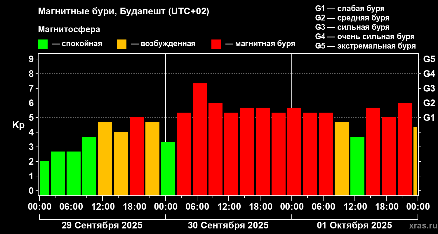 Магнитные бури в Будапеште — 1 октября 2025 года