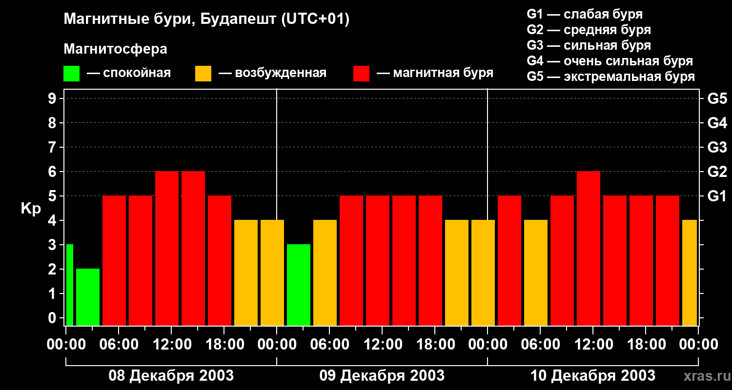 Магнитные бури в Будапеште — 10 декабря 2003 года