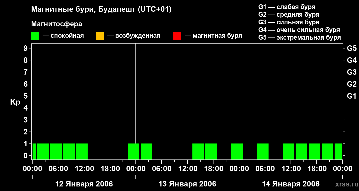 Изменения геомагнитного индекса Kp с 12 по 14 января 2006 года для средних широт