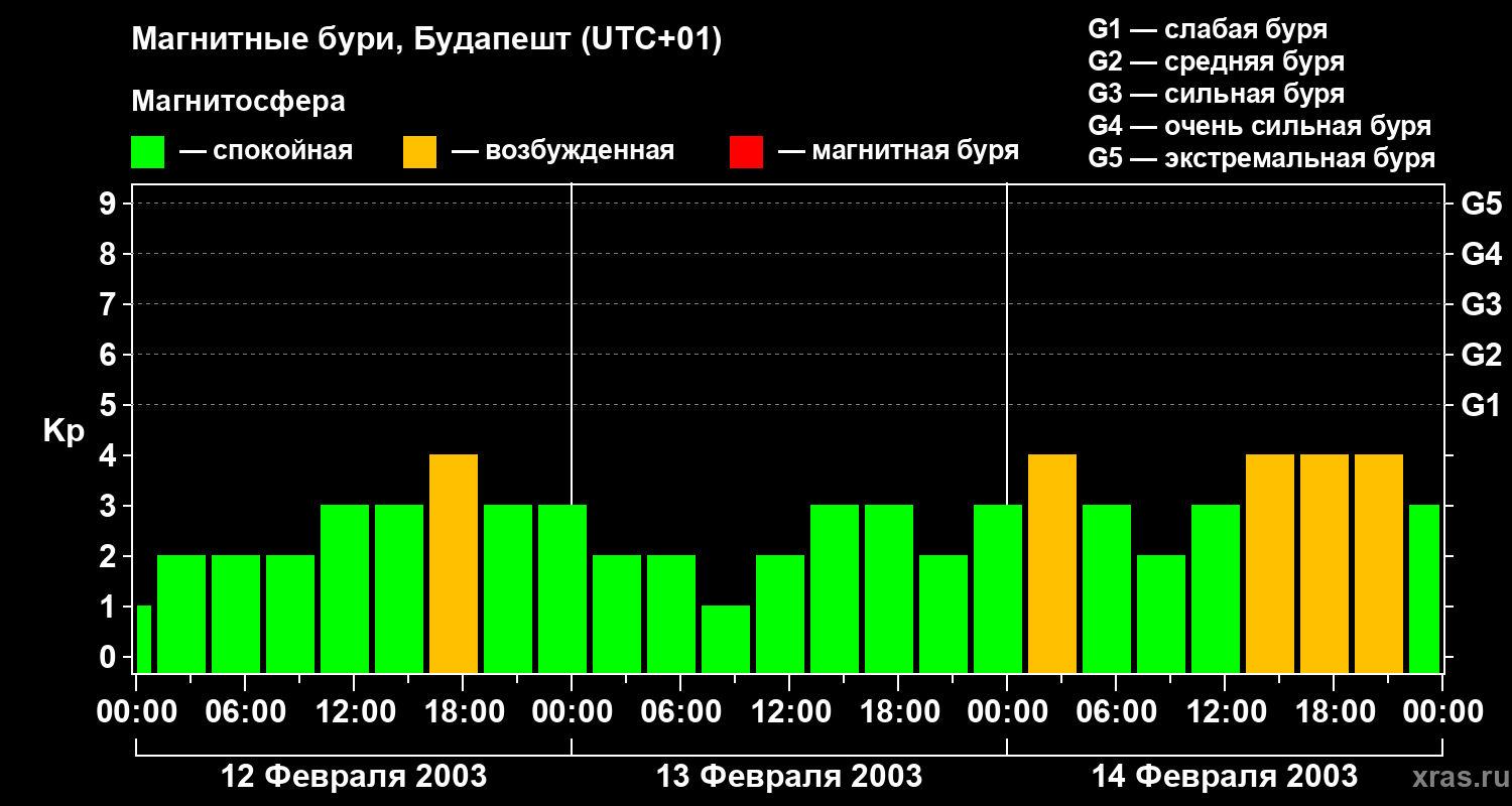 Магнитные бури в Будапеште — 14 февраля 2003 года