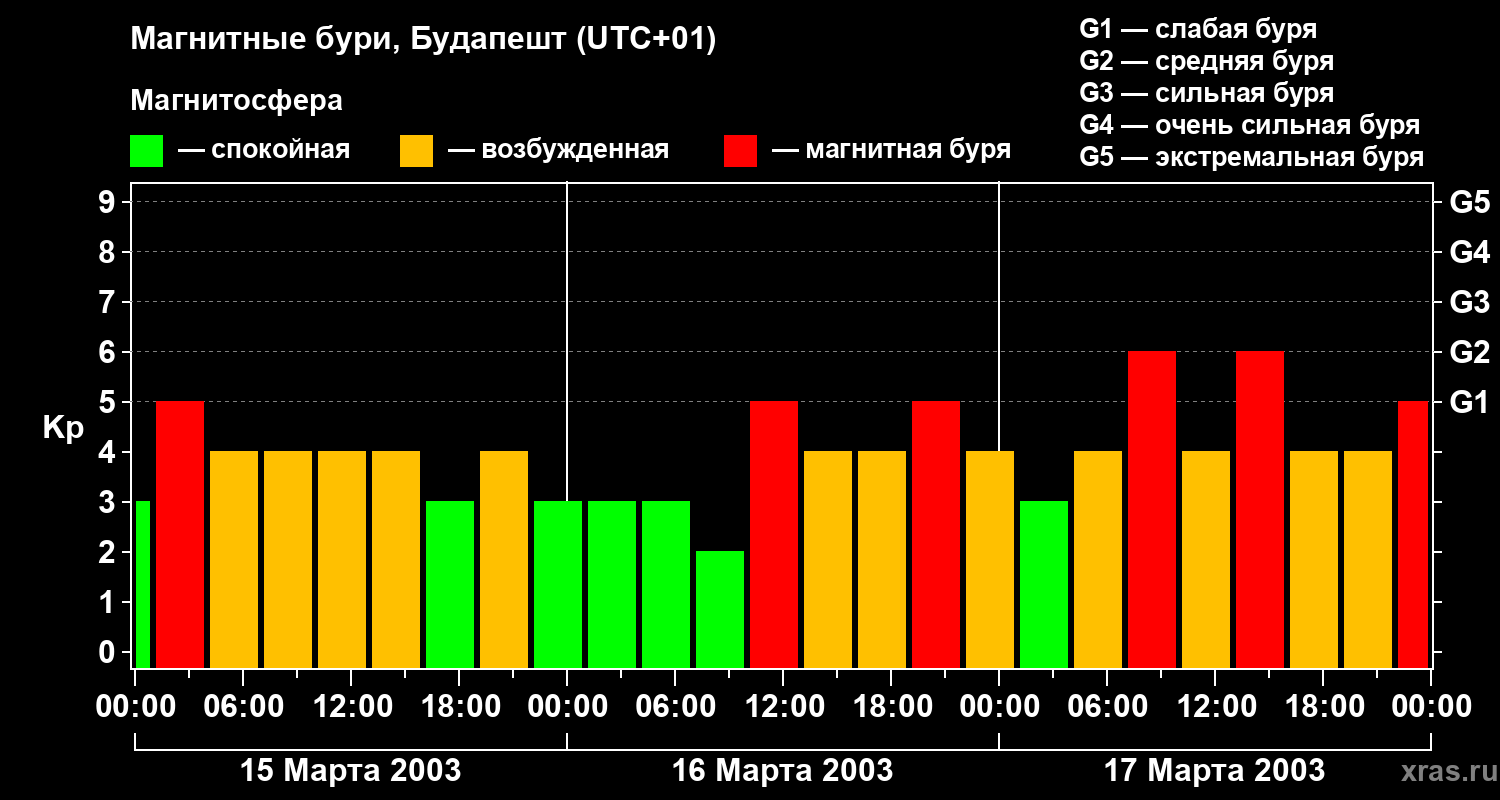 Магнитные бури в Будапеште — 17 марта 2003 года
