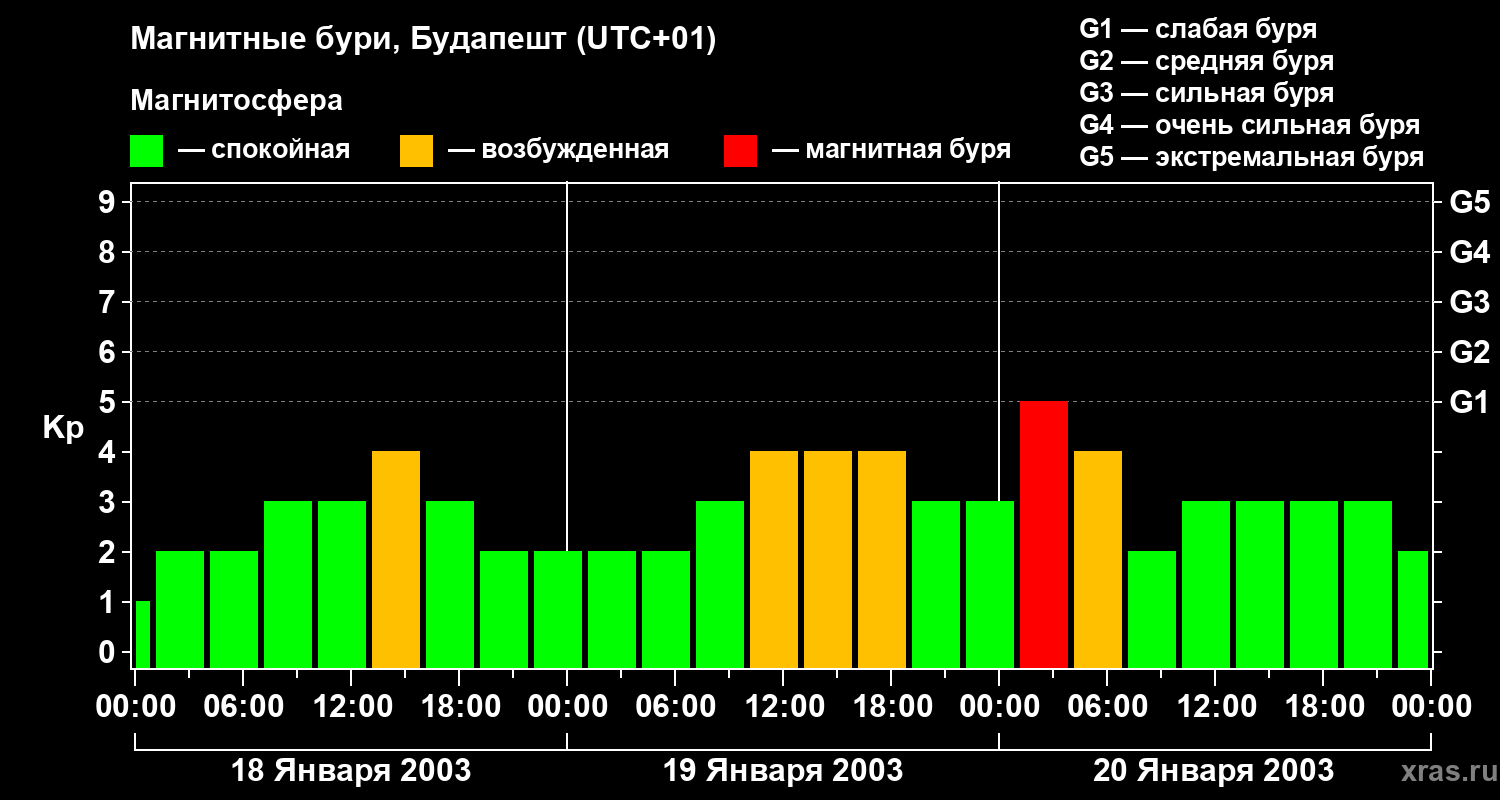 Магнитные бури в Будапеште — 20 января 2003 года