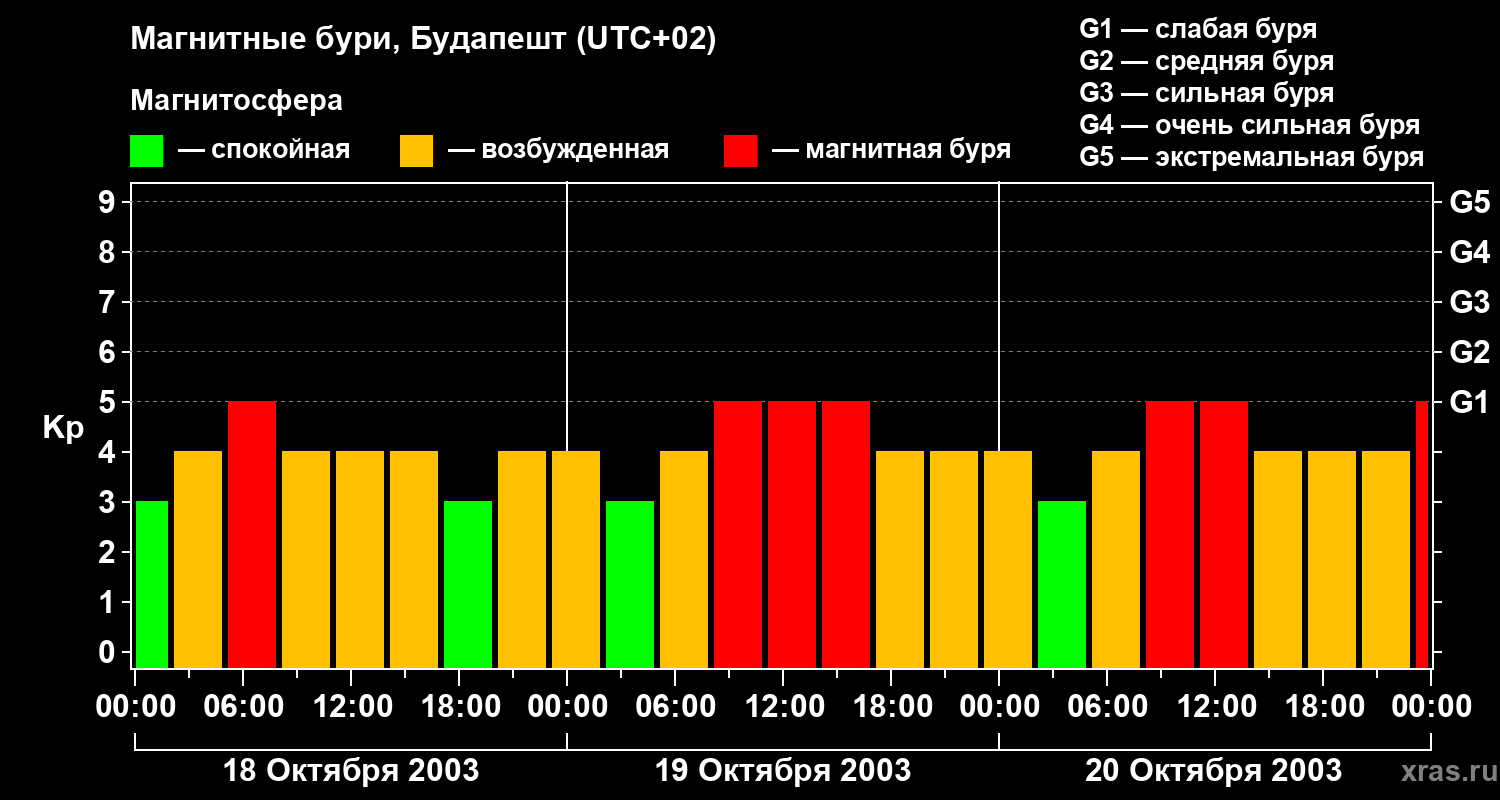 Магнитные бури в Будапеште — 20 октября 2003 года