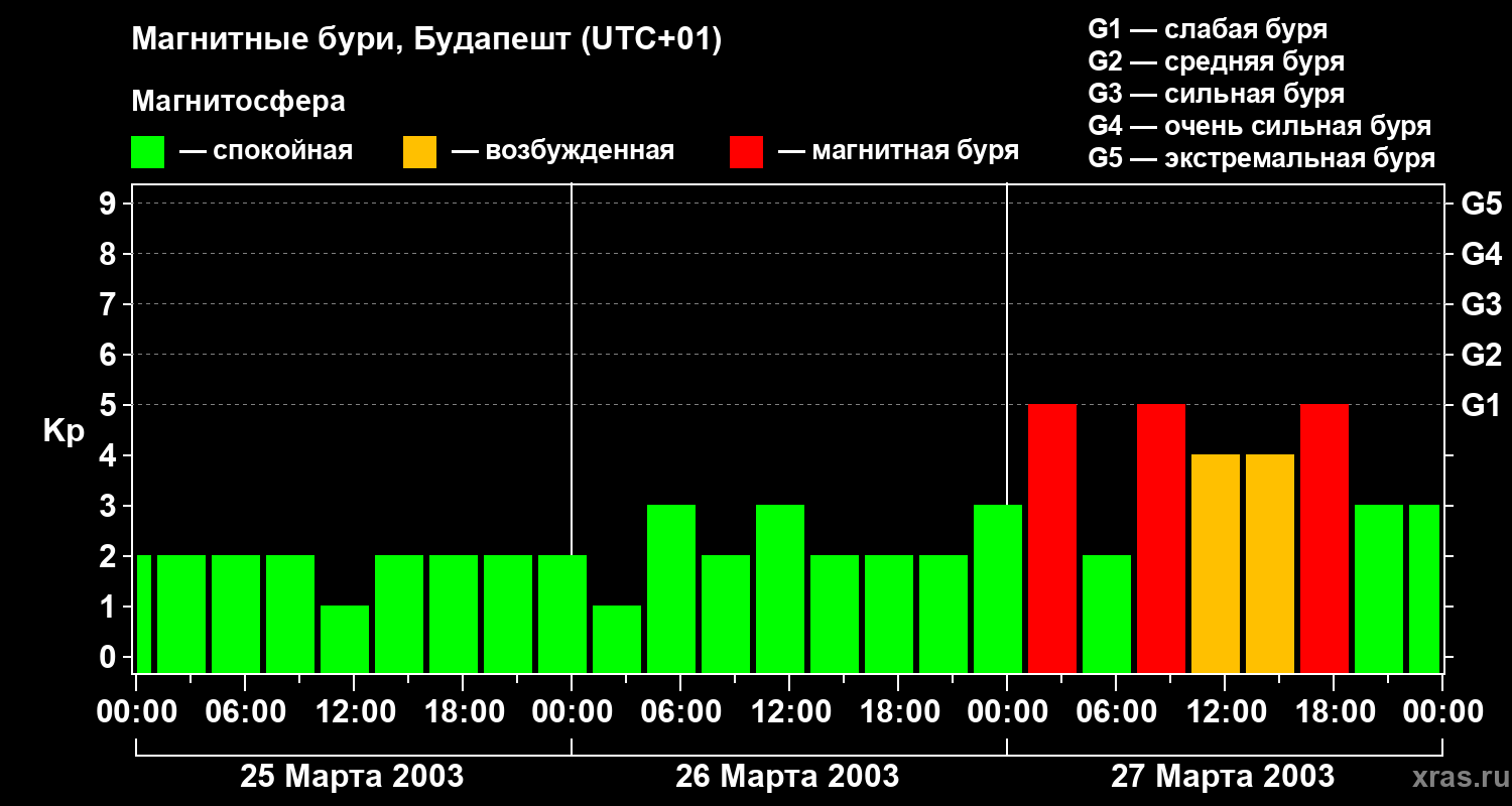 Магнитные бури в Будапеште — 27 марта 2003 года