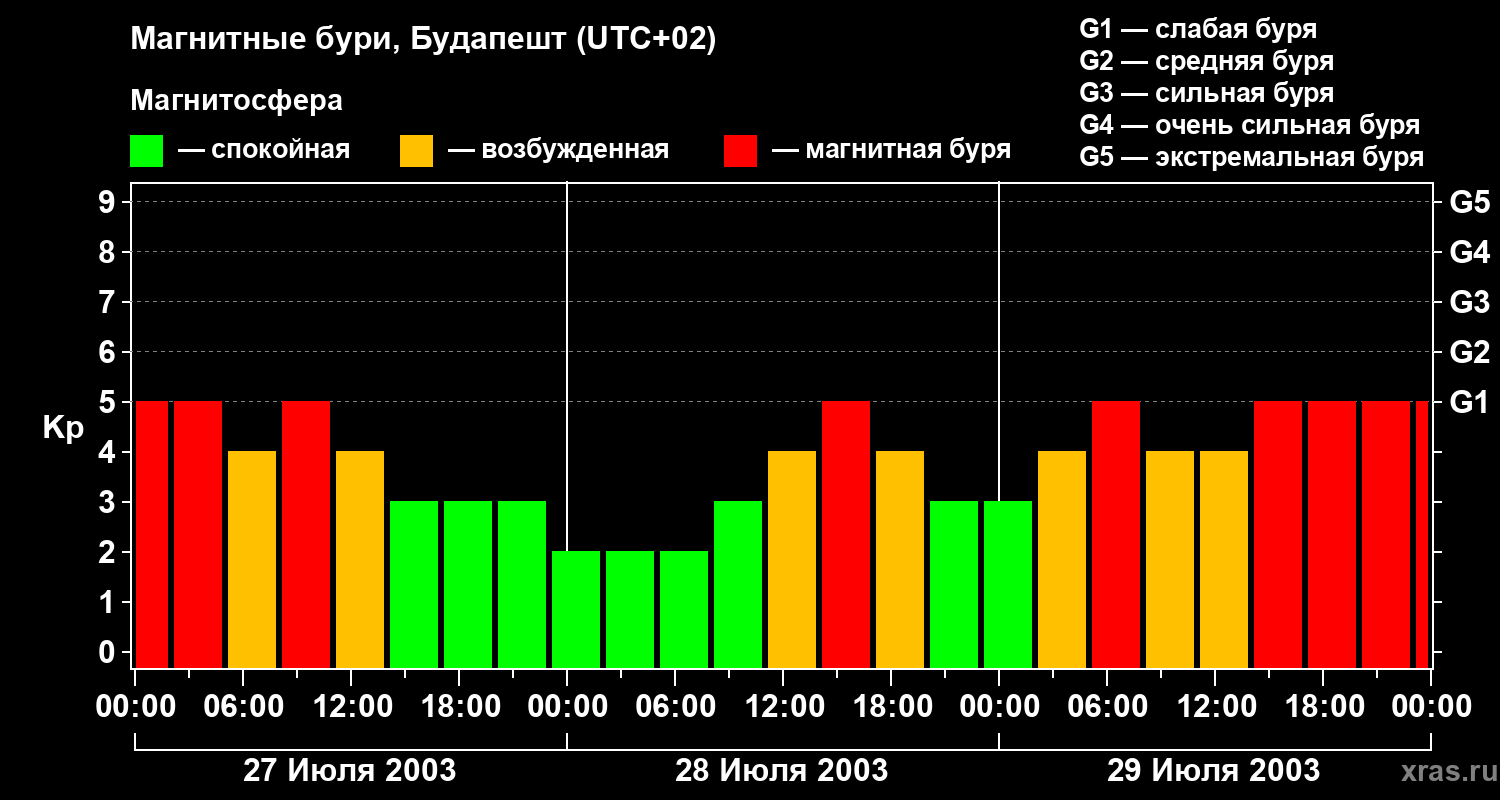 Магнитные бури в Будапеште — 29 июля 2003 года