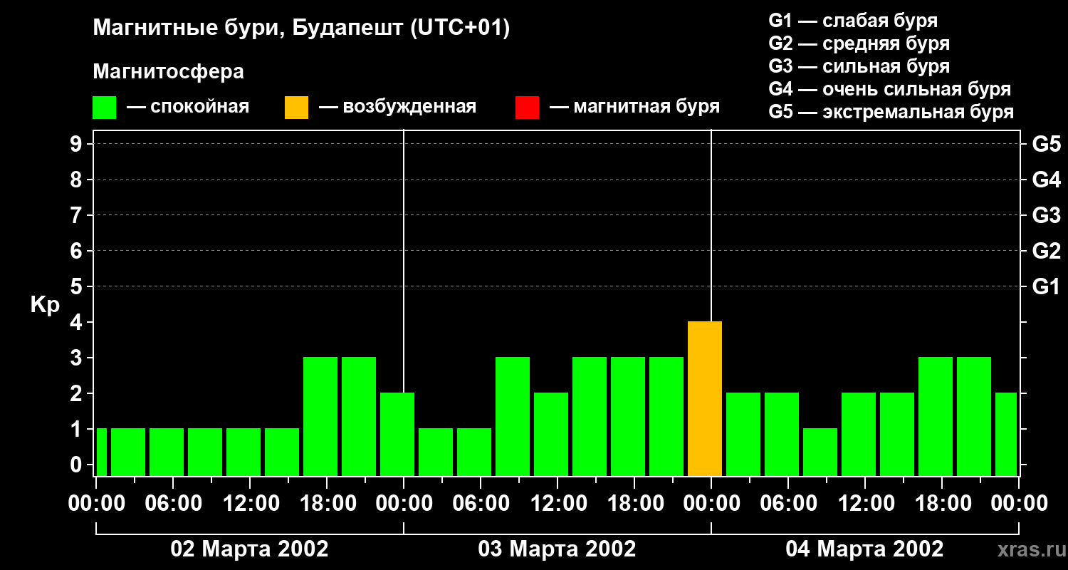 Магнитные бури в Будапеште — 4 марта 2002 года