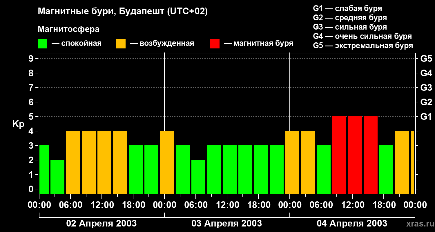 Магнитные бури в Будапеште — 4 апреля 2003 года