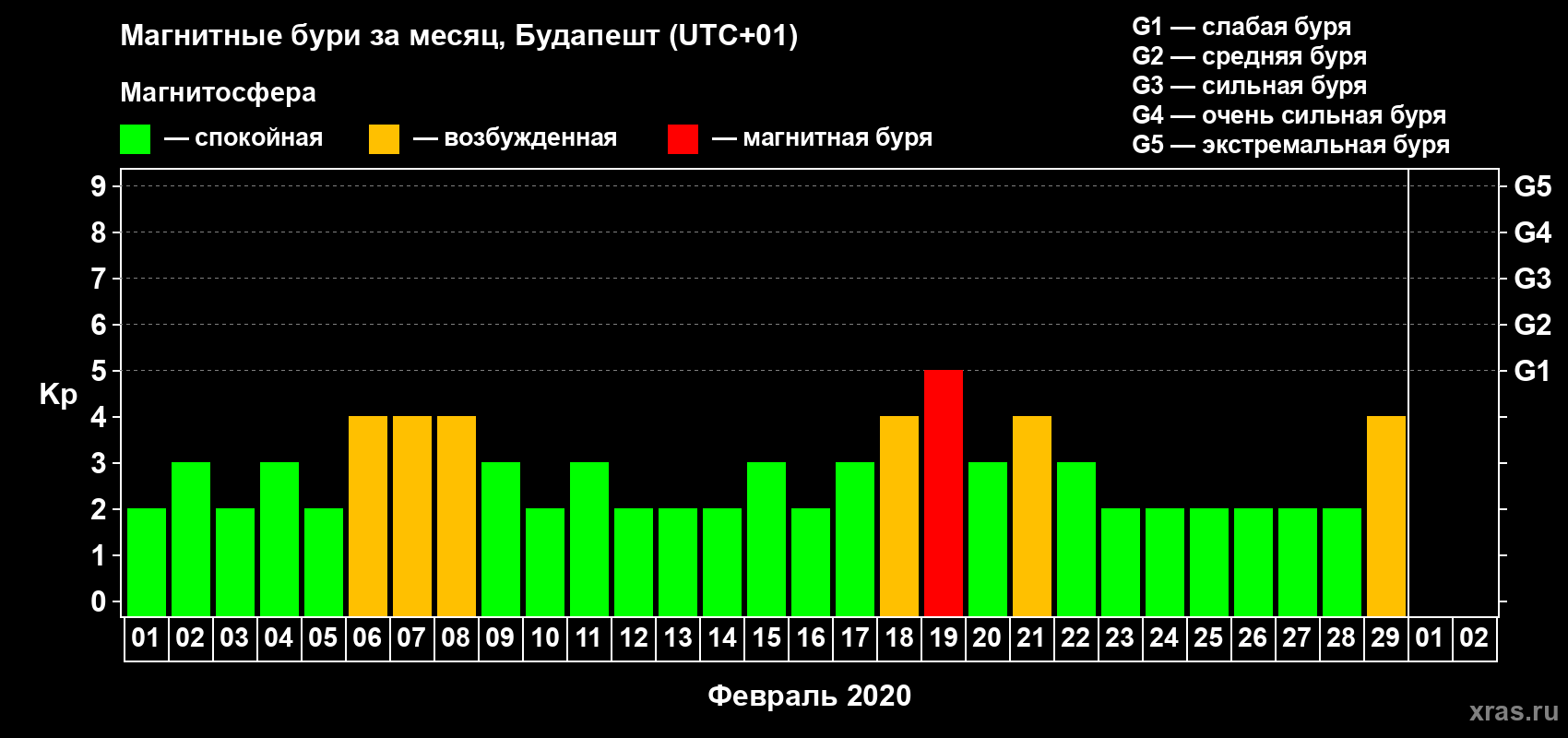 Список магнитных бурь в феврале 2020 года