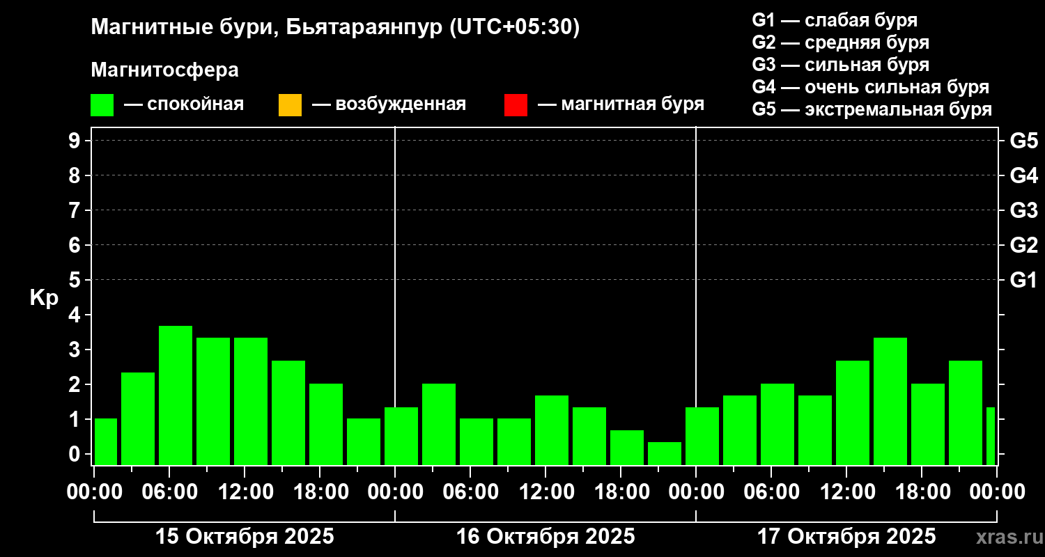 Магнитные бури в Бьятараянпуре — 17 октября 2025 года