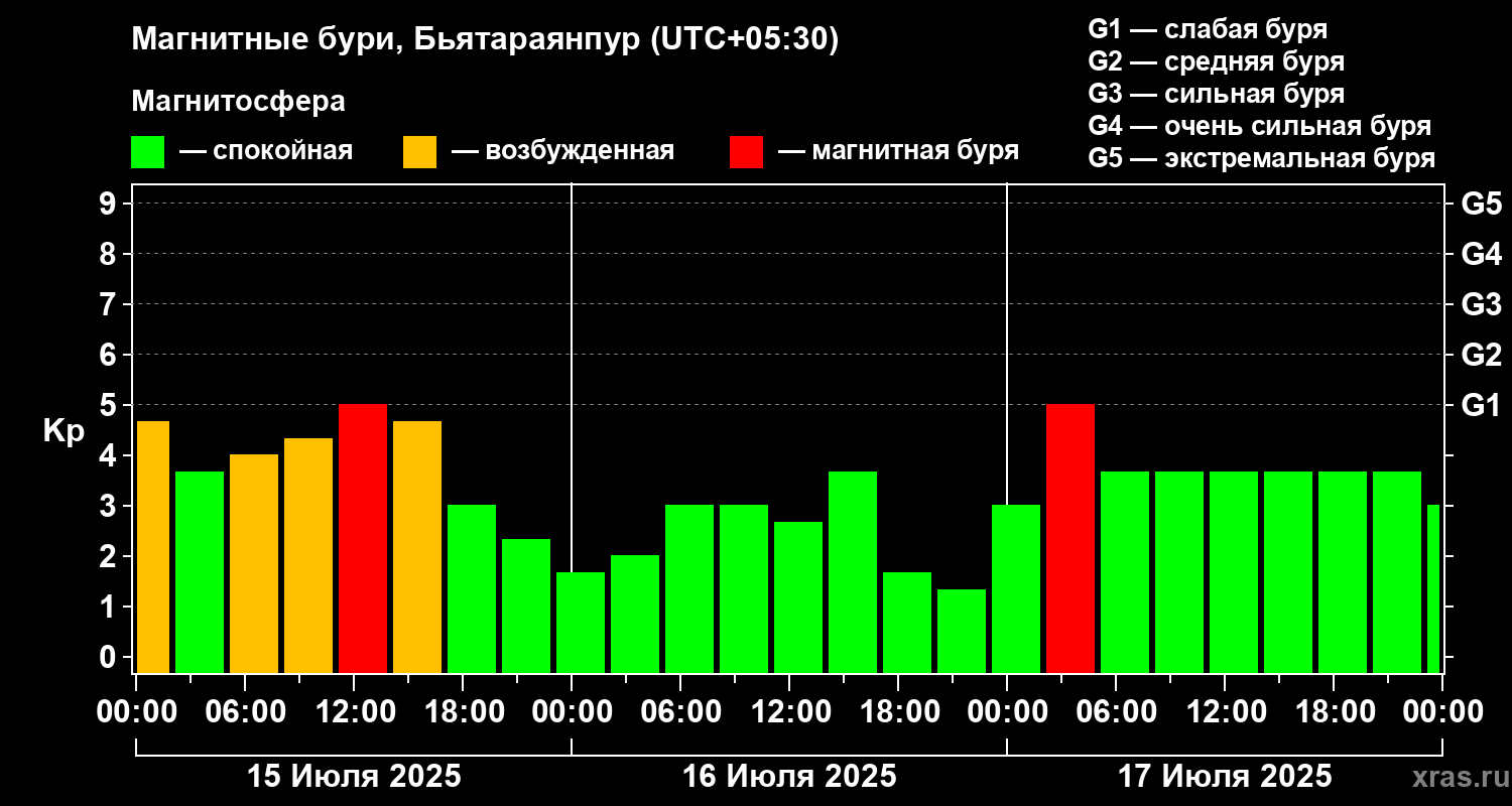 Магнитные бури в Бьятараянпуре — 17 июля 2025 года