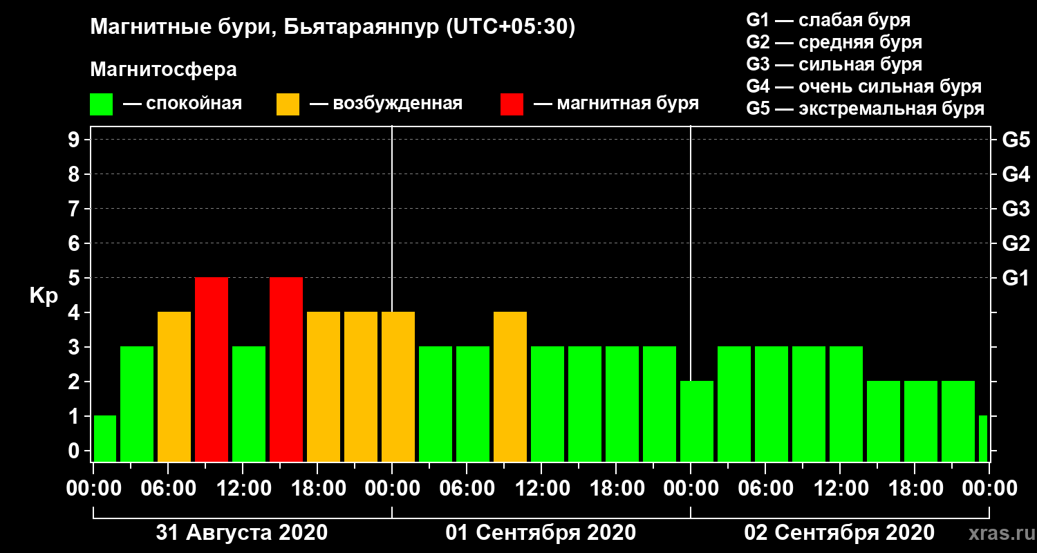 Магнитные бури в Бьятараянпуре 2 сентября 2020 года