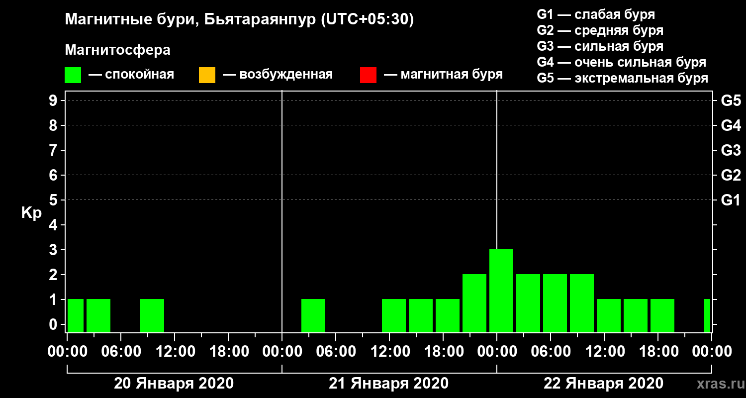 Магнитные бури в Бьятараянпуре — 22 января 2020 года