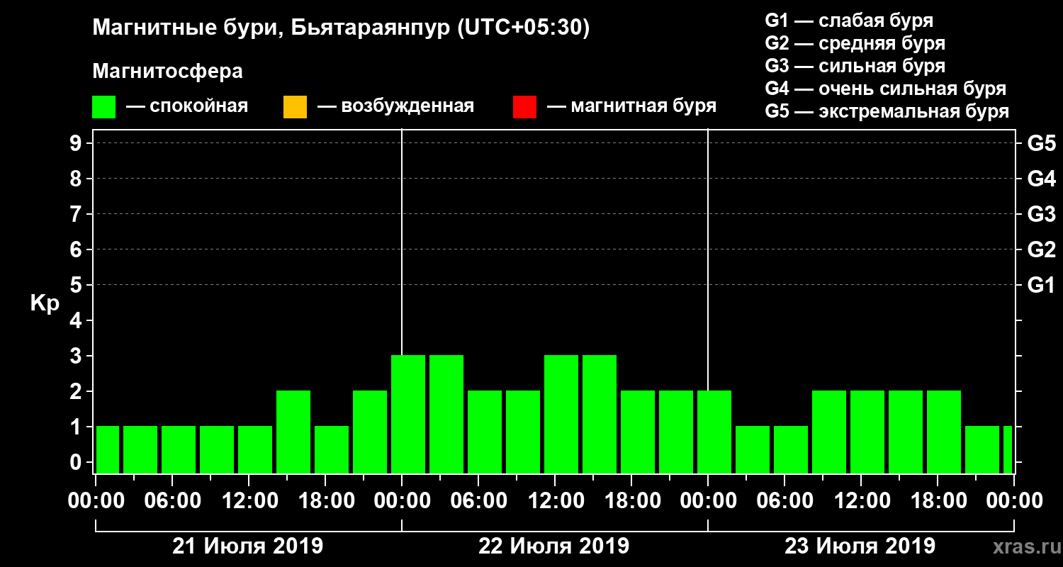 Магнитные бури в Бьятараянпуре 23 июля 2019 года