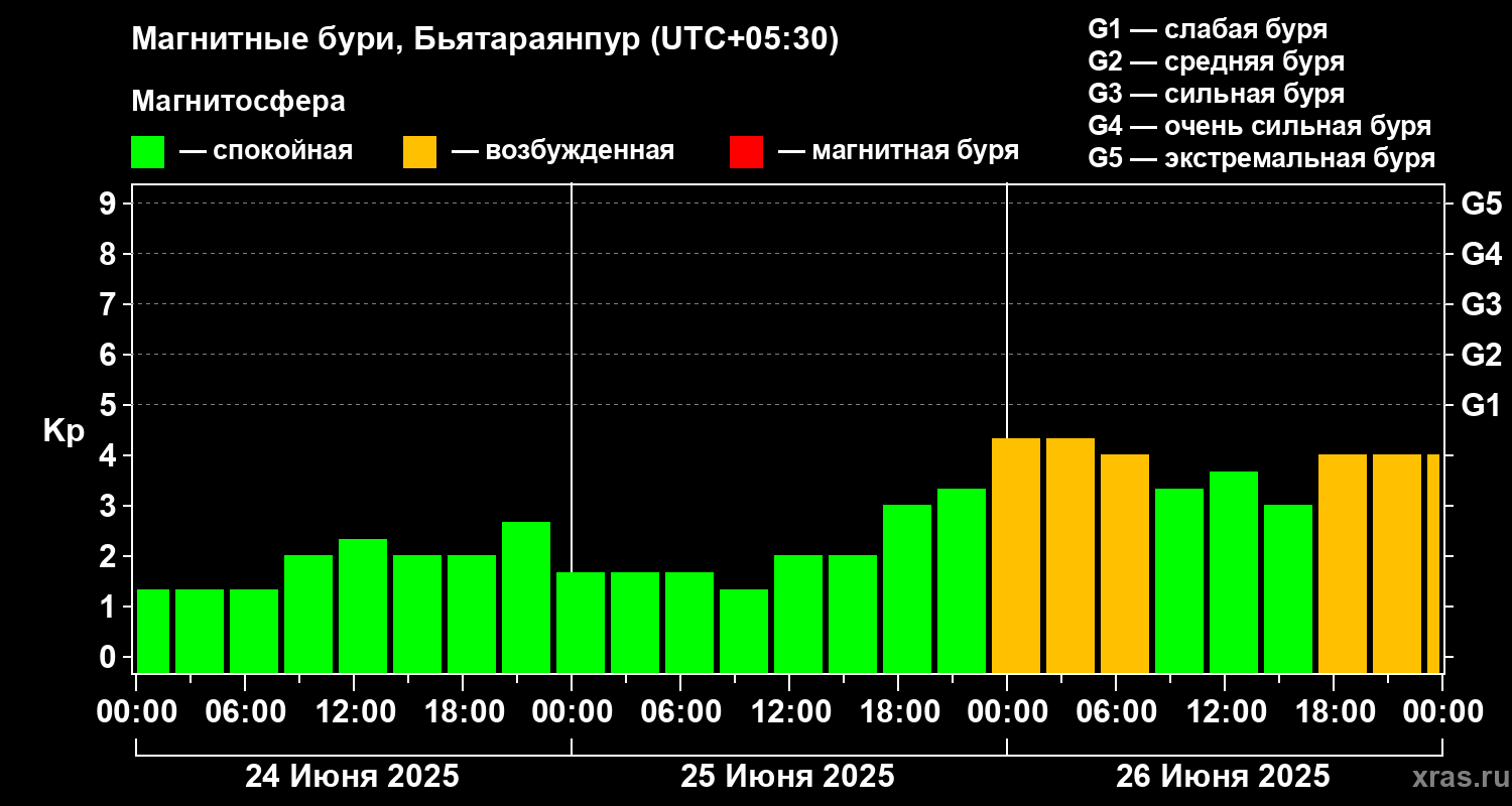 Магнитные бури в Бьятараянпуре — 26 июня 2025 года