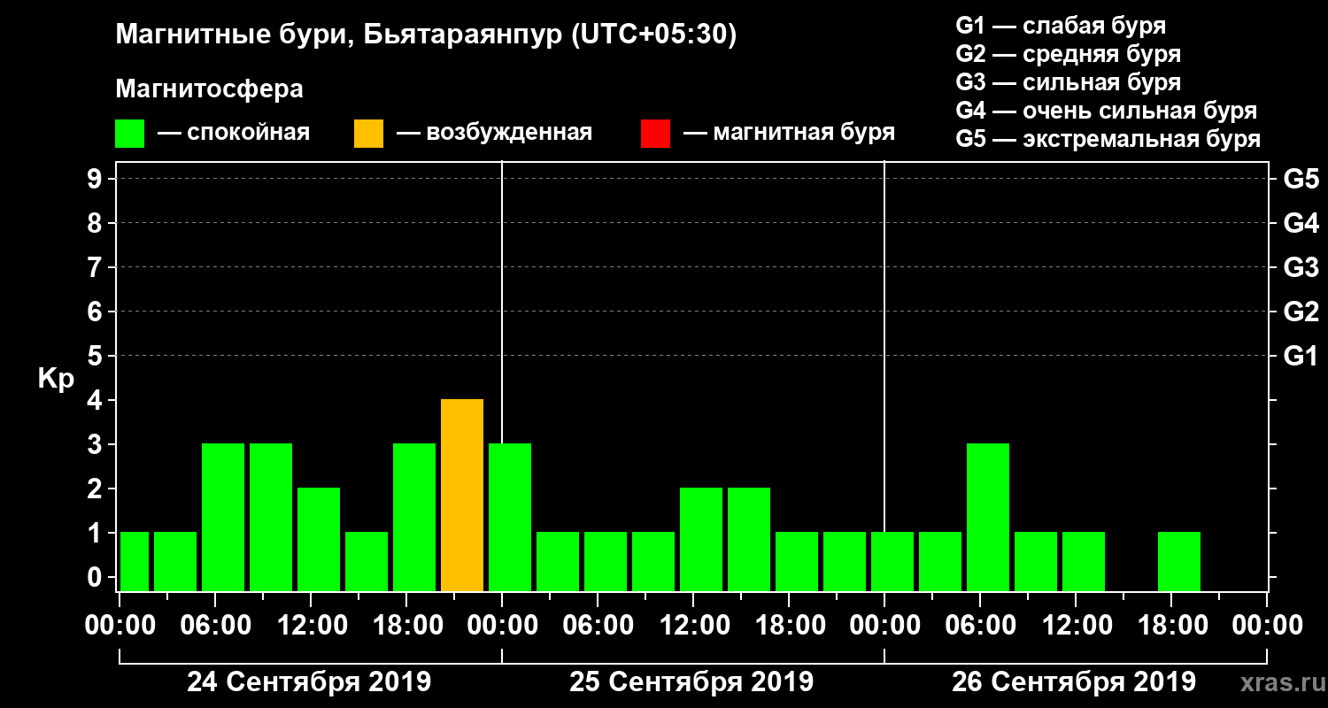 Магнитные бури в Бьятараянпуре — 26 сентября 2019 года