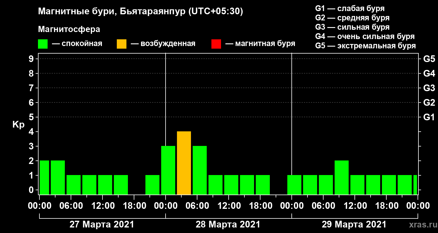 Магнитные бури в Бьятараянпуре — 29 марта 2021 года