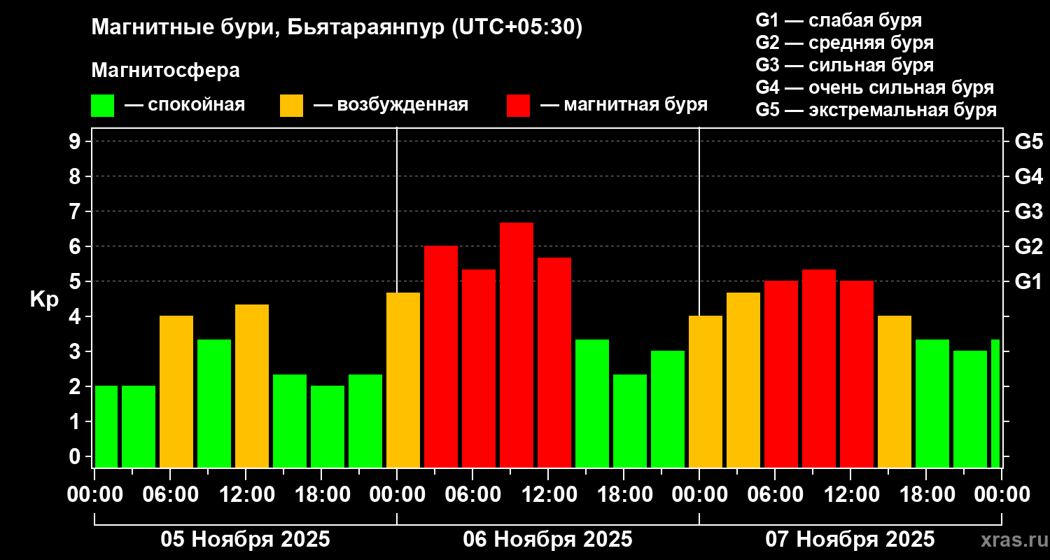 Магнитные бури в Бьятараянпуре — 7 ноября 2025 года