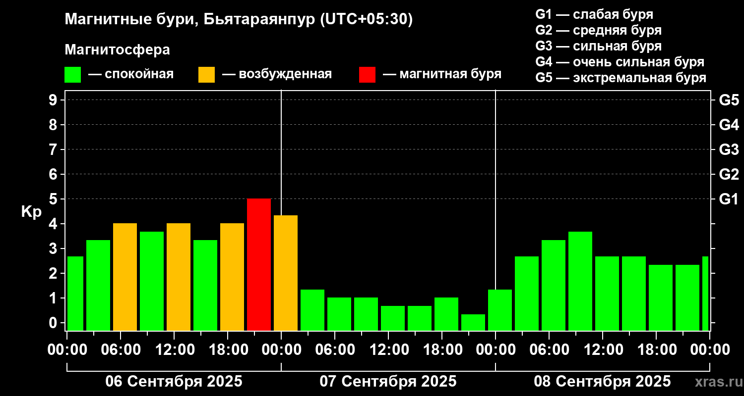 Магнитные бури в Бьятараянпуре — 8 сентября 2025 года