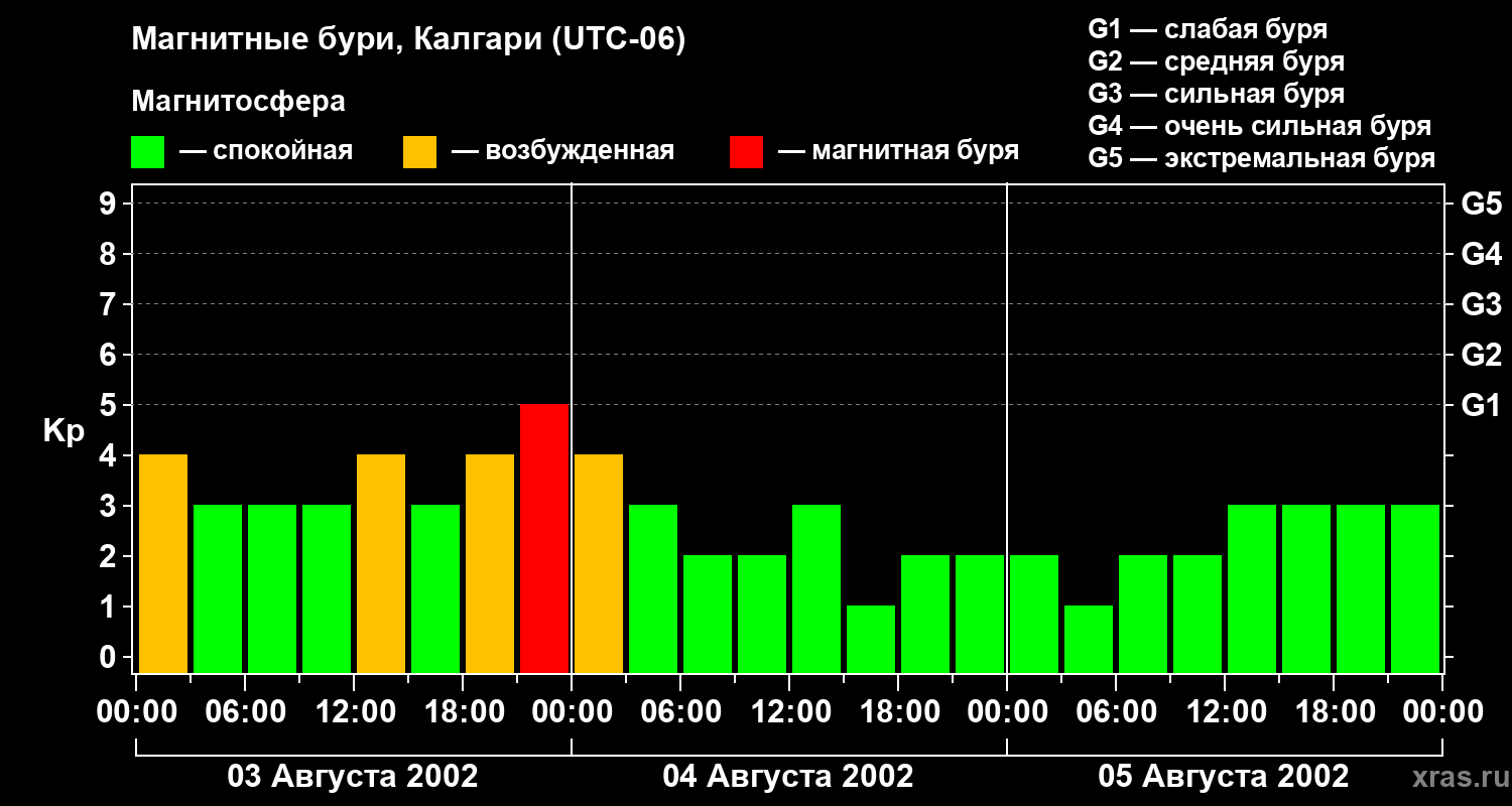 Магнитные бури Калгари 5 августа 2002 года