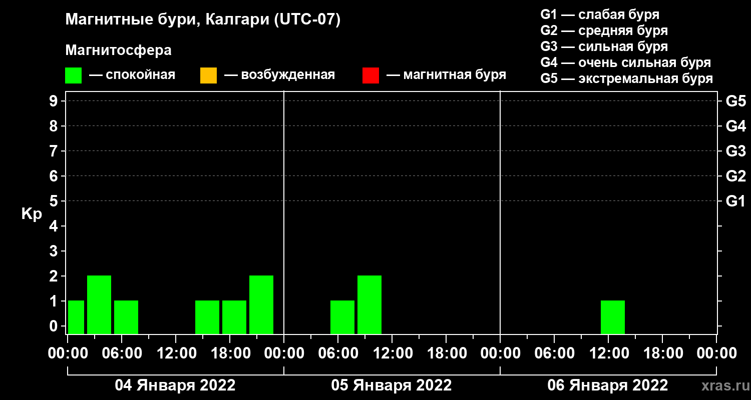 Изменения геомагнитного индекса Kp с 4 по 6 января 2022 года для средних широт