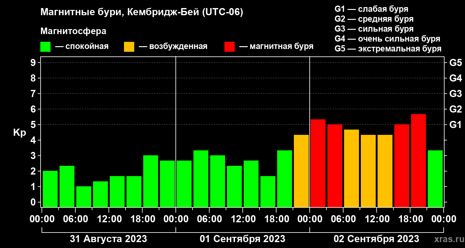 Магнитные бури в Кембридж-Бейе 2 сентября 2023 года