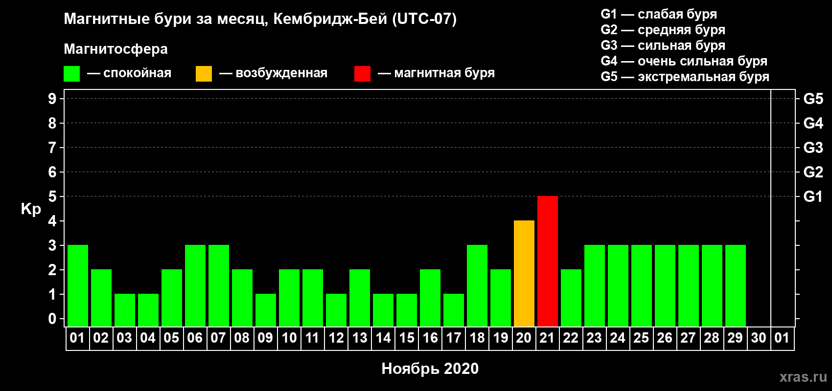 Магнитные бури в Кембридж-Бейе в ноябре 2020 года
