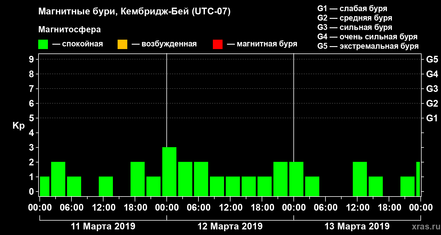 Магнитные бури в Кембридж-Бейе — 13 марта 2019 года