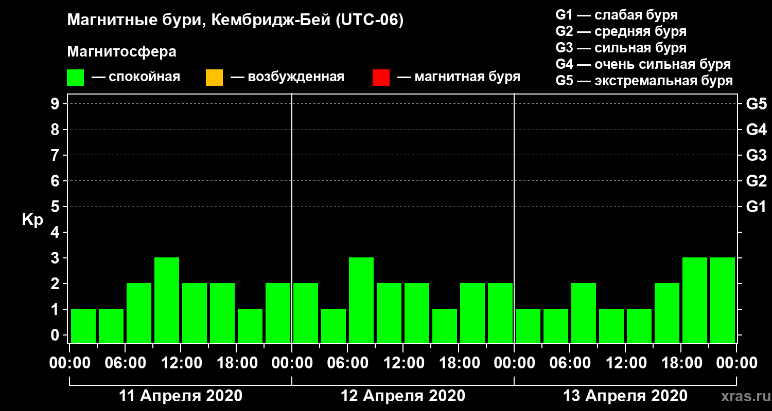 Магнитные бури в Кембридж-Бейе — 13 апреля 2020 года