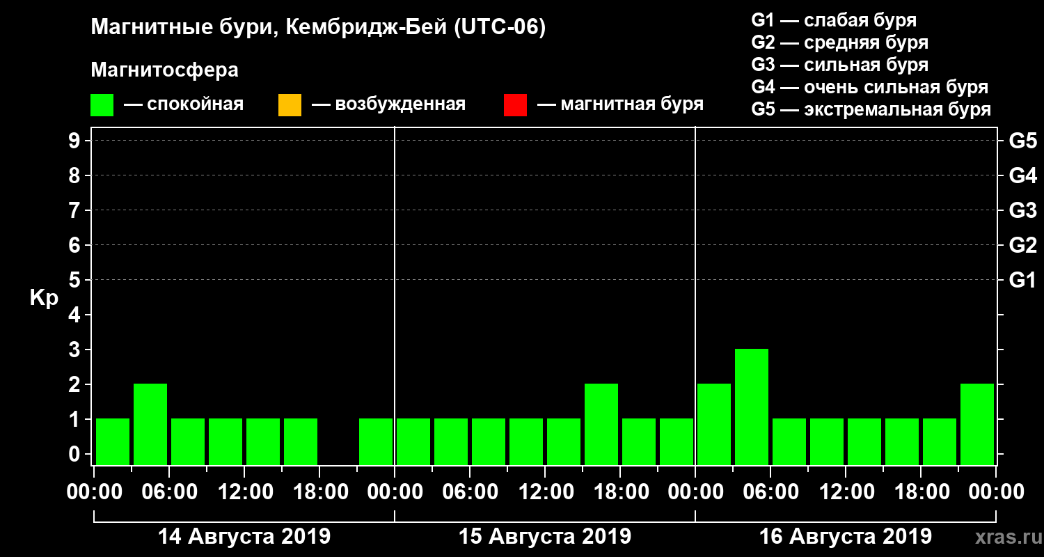 Магнитные бури в Кембридж-Бейе — 16 августа 2019 года