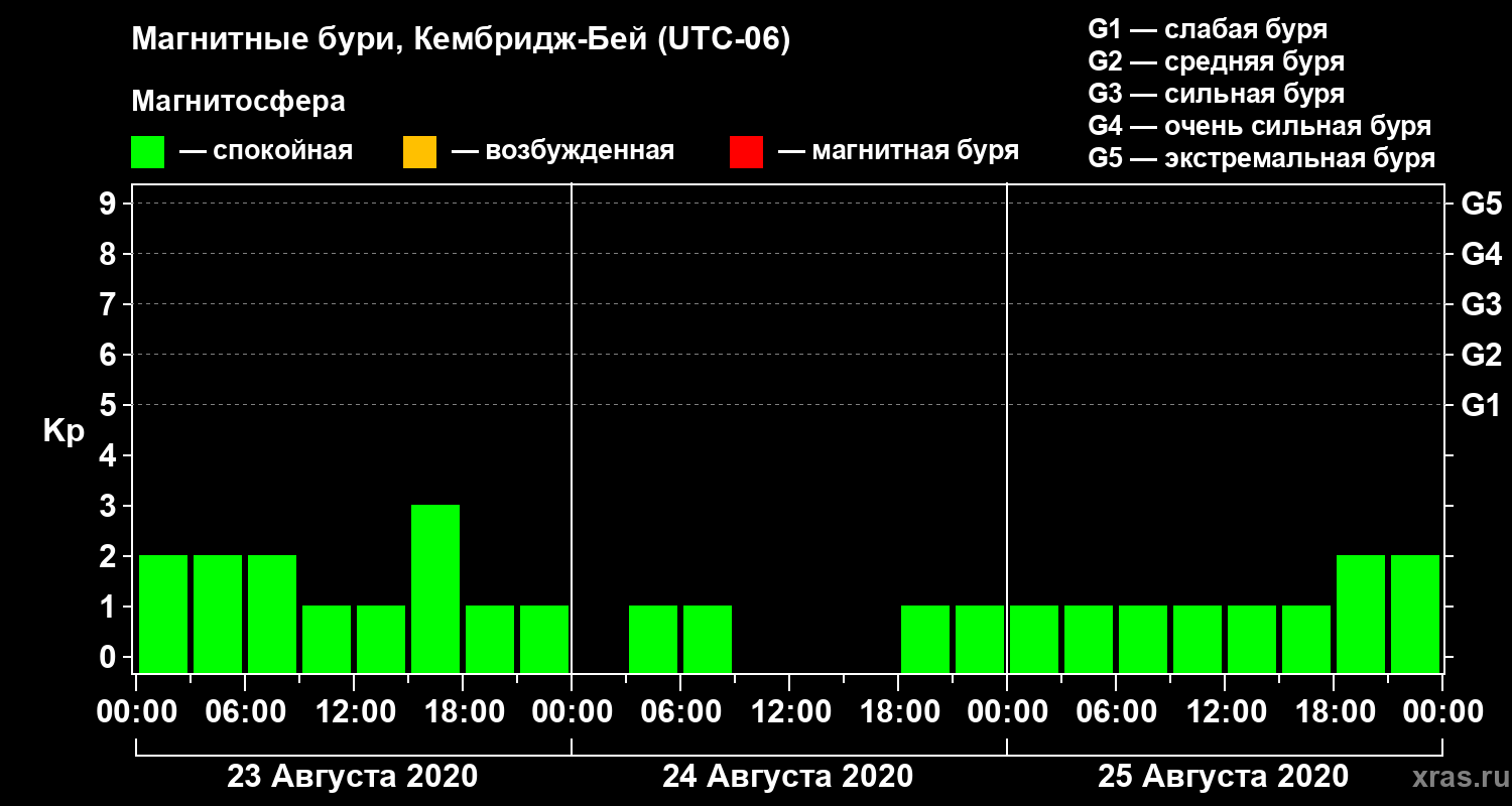 Магнитные бури в Кембридж-Бейе — 25 августа 2020 года