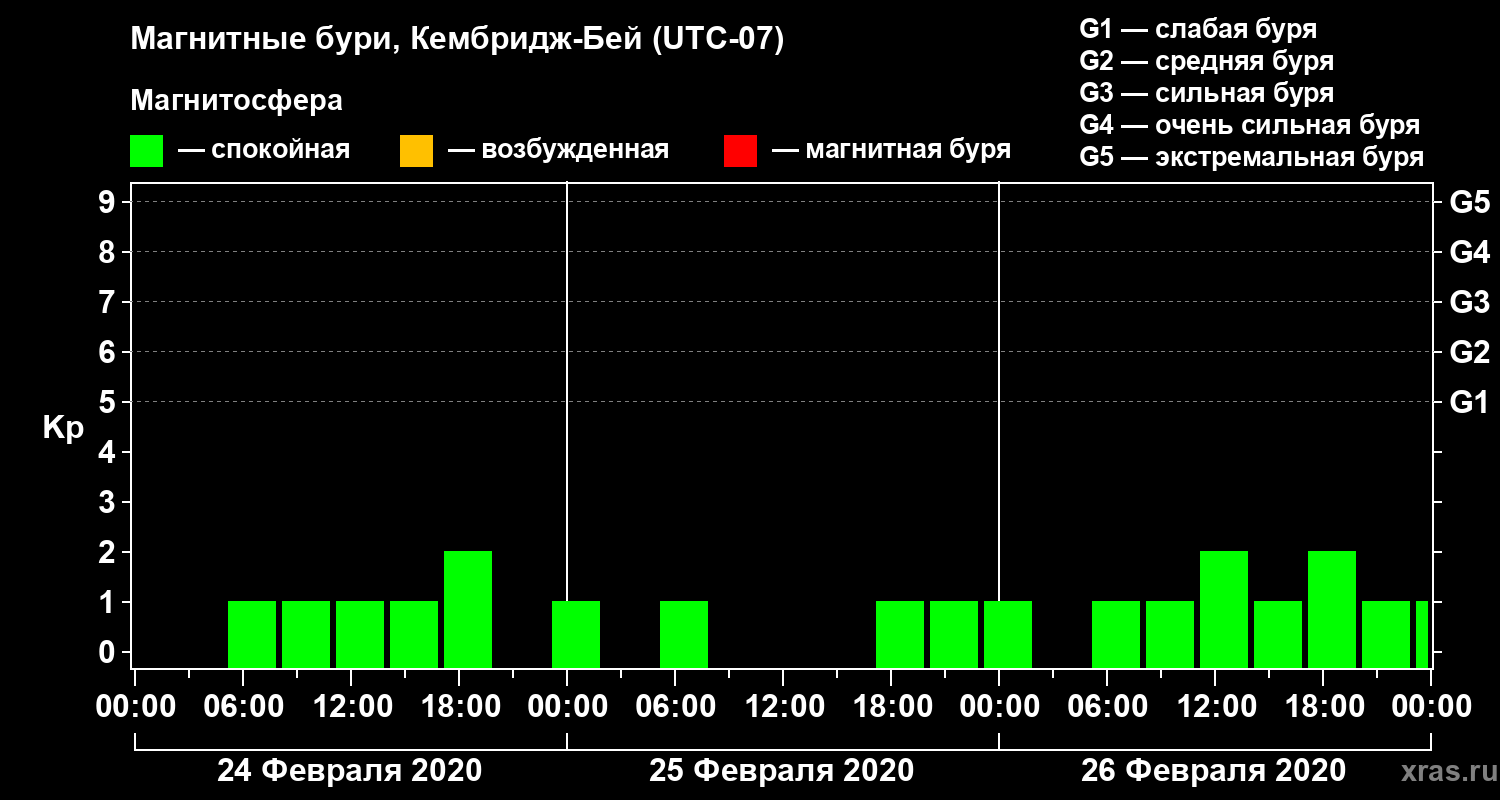 Магнитные бури в Кембридж-Бейе — 26 февраля 2020 года
