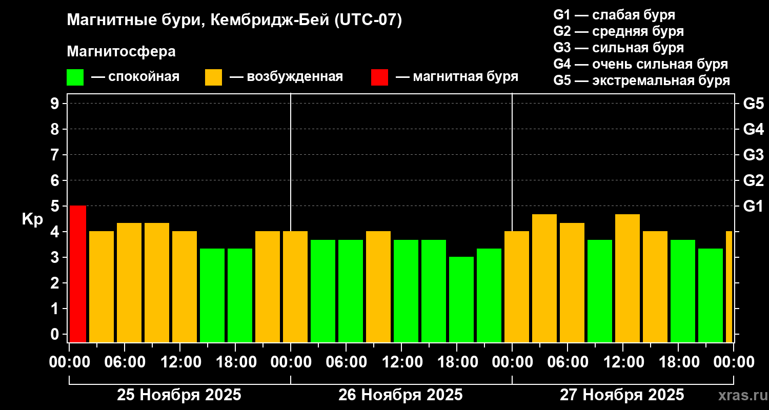 Магнитные бури в Кембридж-Бейе — 27 ноября 2025 года
