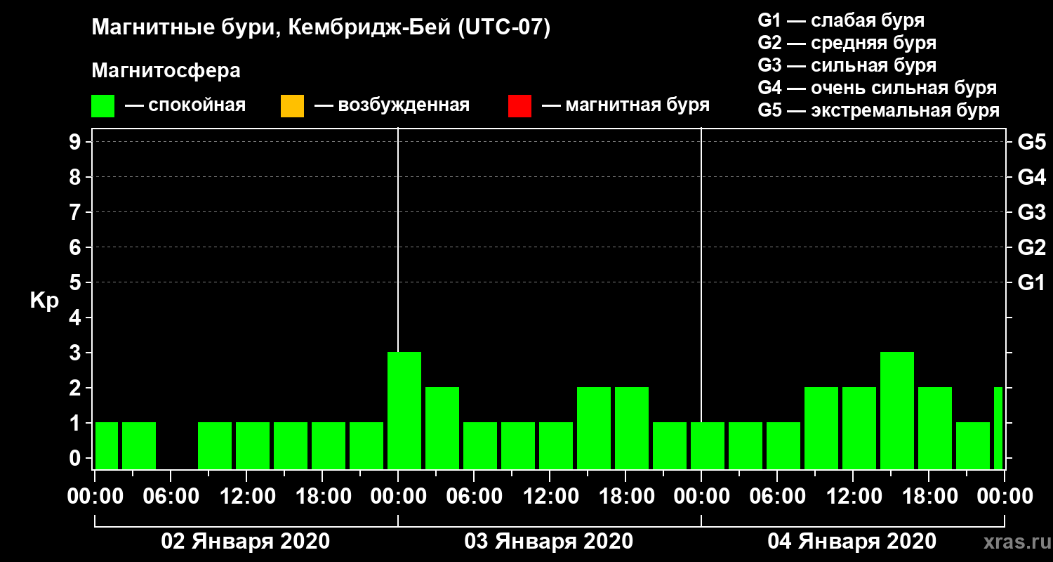 Магнитные бури в Кембридж-Бейе — 4 января 2020 года