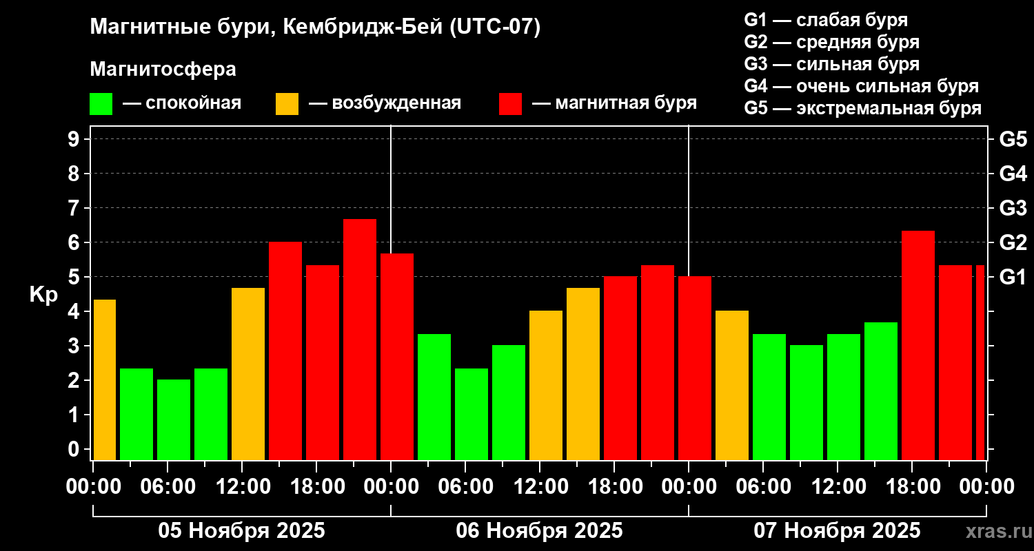 Магнитные бури в Кембридж-Бейе — 7 ноября 2025 года