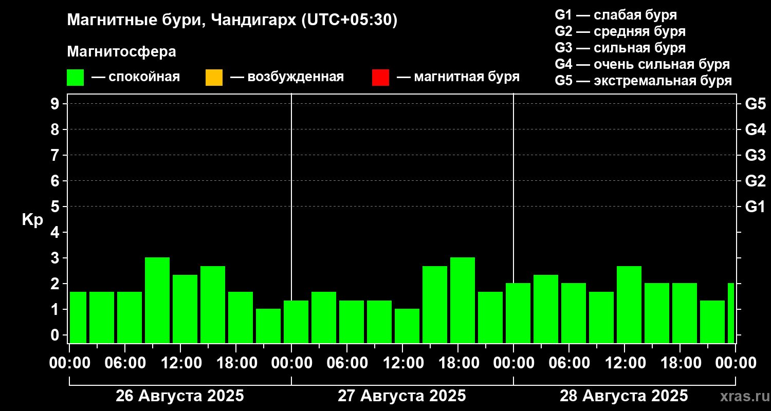 Магнитные бури в Чандигархе — 28 августа 2025 года