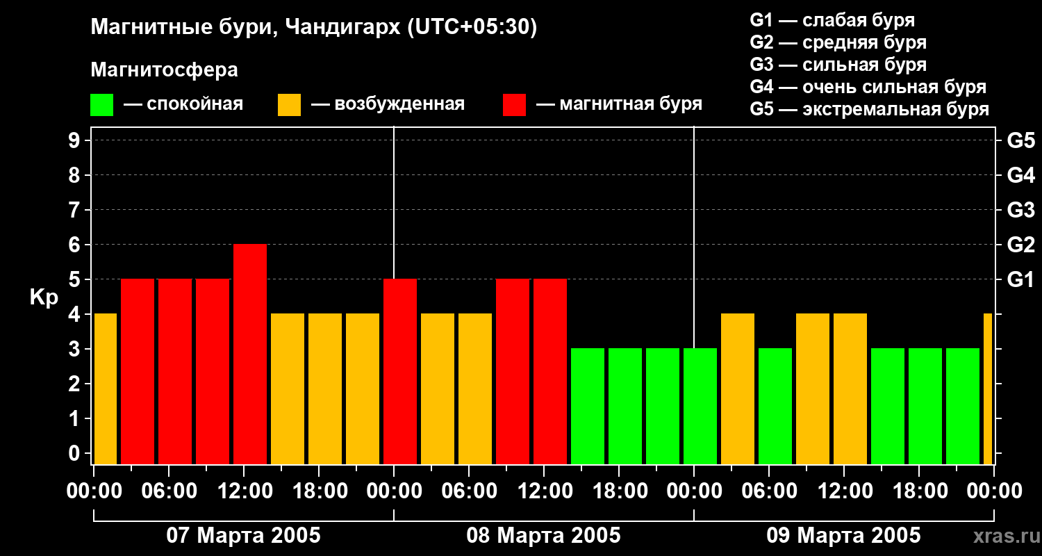 Магнитные бури в Чандигархе — 9 марта 2005 года