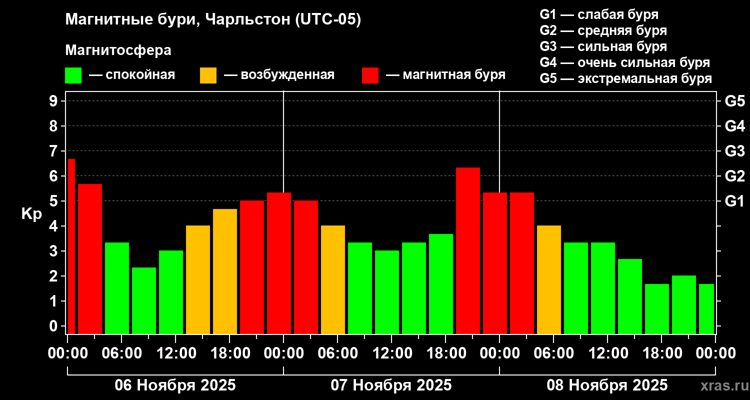 Магнитные бури в Чарльстоне 8 ноября 2025 года