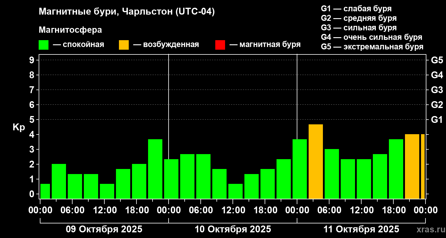 Магнитные бури в Чарльстоне — 11 октября 2025 года
