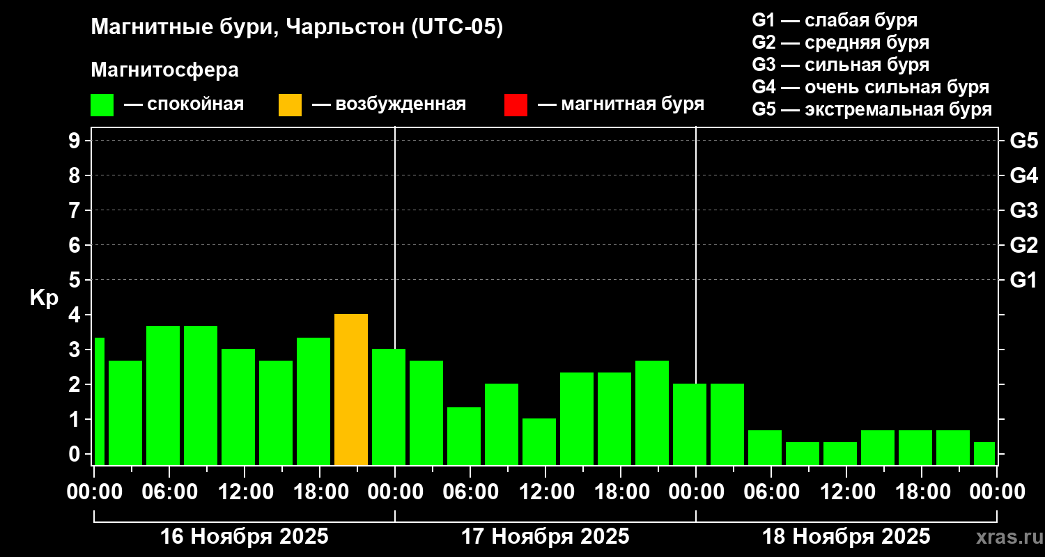 Магнитные бури в Чарльстоне 18 ноября 2025 года
