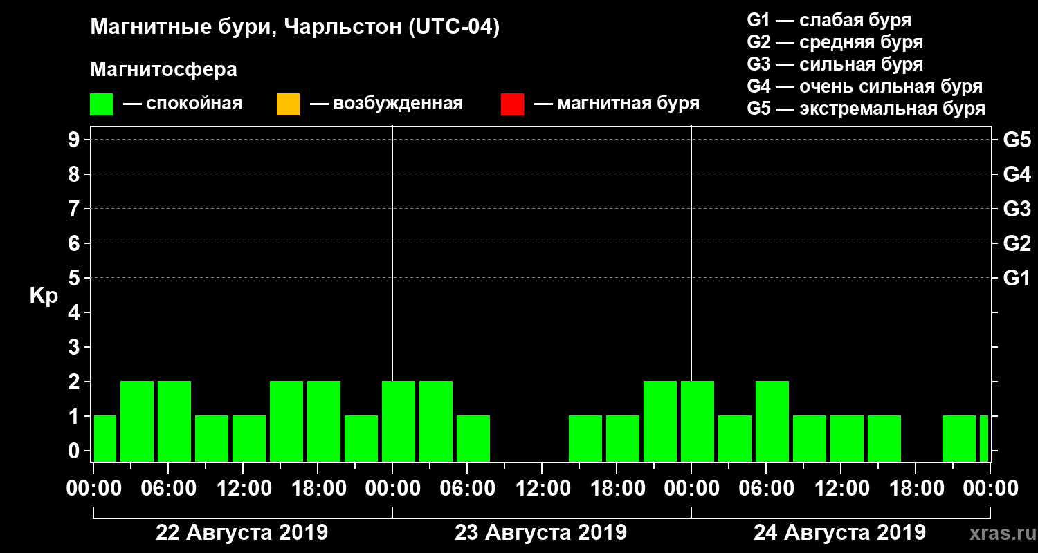 Магнитные бури в Чарльстоне — 24 августа 2019 года
