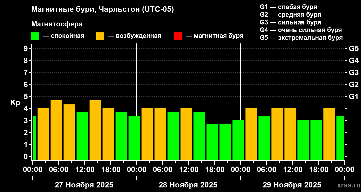 Магнитные бури в Чарльстоне — 29 ноября 2025 года